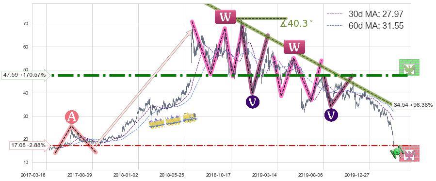 ♘ 阻力价格位47.59,可信任强度99.80%,距离最后交易2020-03-13形成的收盘价格17.59相差 +170.57%