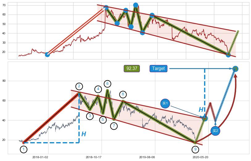 ➣ 最小中继整理涨幅→𝐇: 50.27 (𝐇旗杆的长度:旗杆起点→顶点)