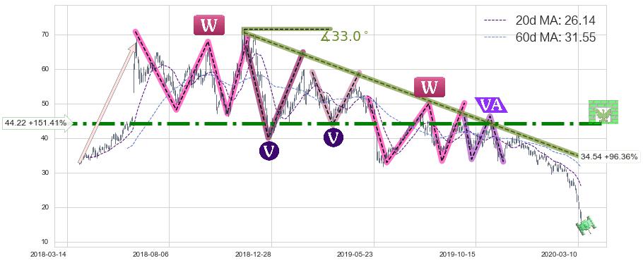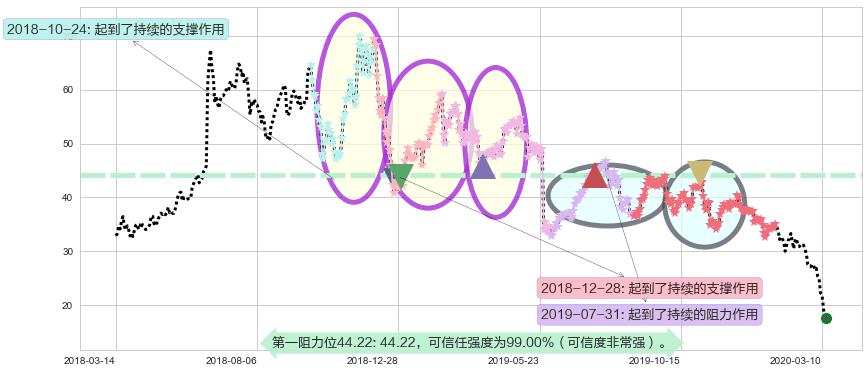 ♘ 阻力价格位44.22,可信任强度99.00%,距离最后交易2020-03-13形成的收盘价格17.59相差 +151.41%