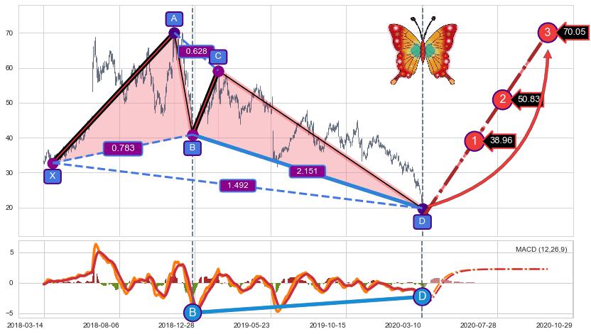 ➣ 已完成【蝴蝶】形态起点X: 2018-04-02, 终点D: 2020-03-11, 共490交易日