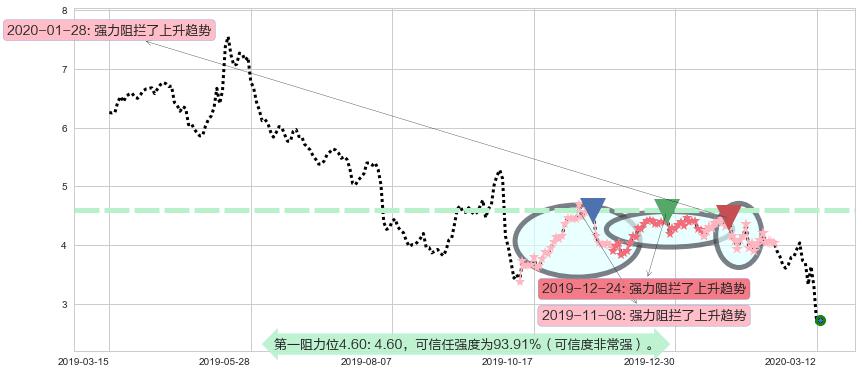 ♞ 第一阻力位4.60价格为4.60,其通过量化计算出的可信任强度为93.91%(可信度非常强)。