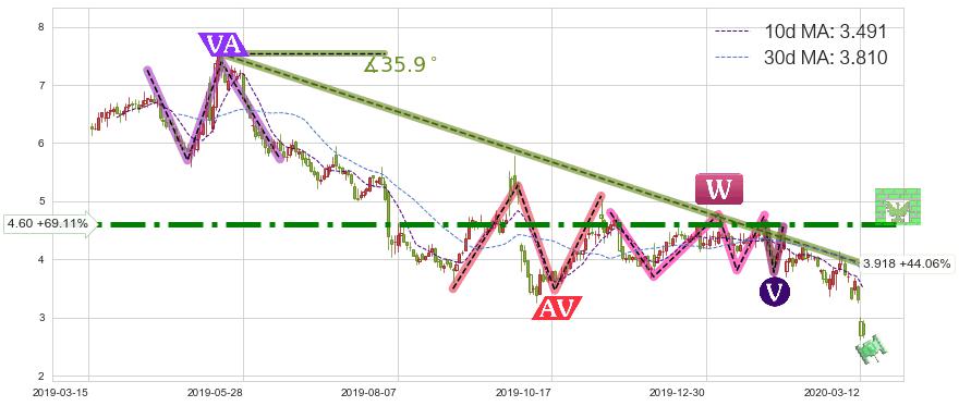 ♘ 阻力价格位4.60,可信任强度93.91%,距离最后交易2020-03-13形成的收盘价格2.720相差 +69.11%