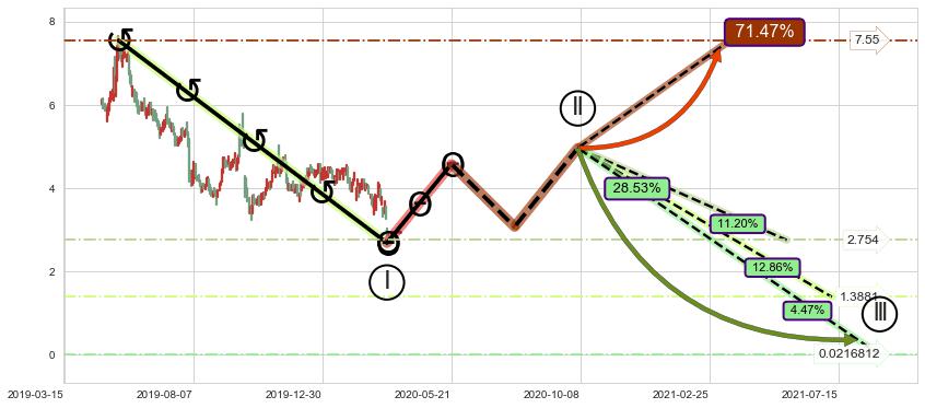 ➢ 循环浪继续向下【最高】位置(2021-05-20, 2.754),匹配聚类样本比例39.27%, 可能性概率11.20%