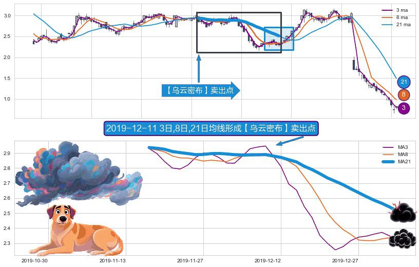 形态多维评估: ⚀ 2019-11-18日-2020-01-06日显现 3日-8日-21日均线 【乌云密布】卖出点 看空信号,后市看跌,卖出
