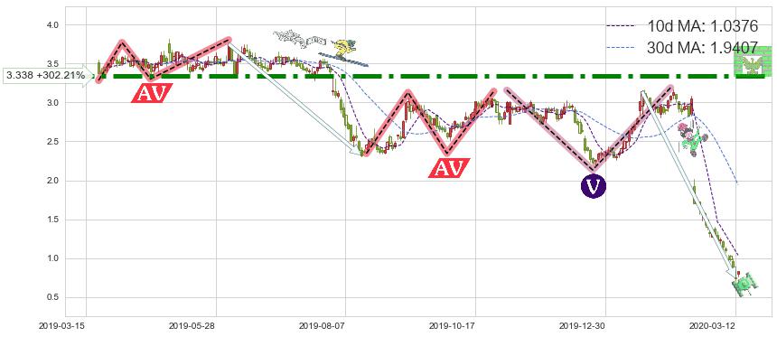 ♘ 阻力价格位3.338,可信任强度98.85%,距离最后交易2020-03-13形成的收盘价格0.8300相差 +302.21%