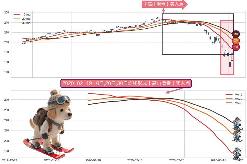 ⚀ 2020-01-23日-2020-03-13日显现 10日-20日-30日均线 【高山滑雪】买入点 看多信号,后市看涨,买入