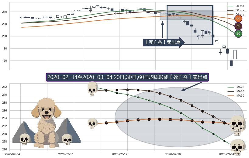 ⚀ 2020-02-18-日至2020-03-04-日显现 20日-30日-60日均线 【死亡谷】卖出点 看空信号,后市看跌,卖出