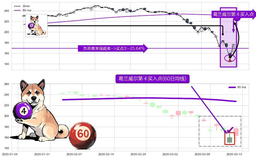 ⚀ 2020-03-12-日显现 葛兰威尔均线 60日均线 第④买入点 下降趋势均值回复的短线反弹信号,后市看涨,买进信号