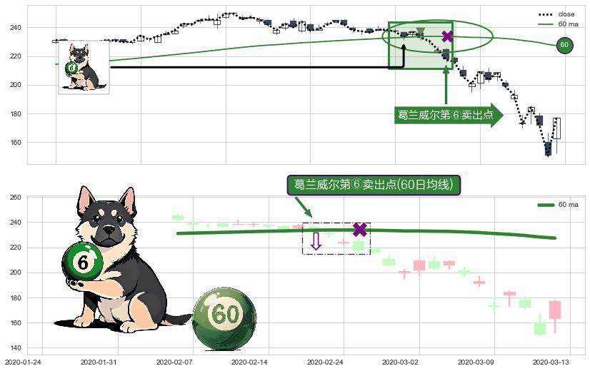 ⚀ 2020-02-20-日显现 葛兰威尔均线 60日均线 第⑥卖出点 走势反转见顶信号,后市看跌,卖出信号