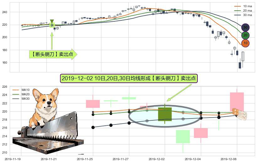 ⚀ 2019-12-02日显现 10日-20日-30日均线 【断头铡刀】卖出点 看空信号,后市看跌,卖出