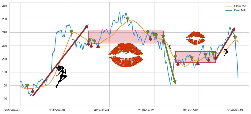 2017-07-12至2018-11-08 慢线与快线多次接触,存在上下穿越,有缠绕