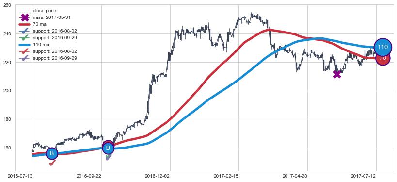 ➢ 最优均线组合共正确确认支撑阻力信号3处,正确确认率 75.00%