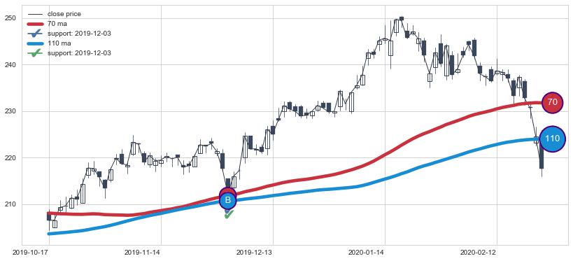 ⚅ 短期均线MA30上穿中期均线MA90形成的交叉是标准 黄金交叉