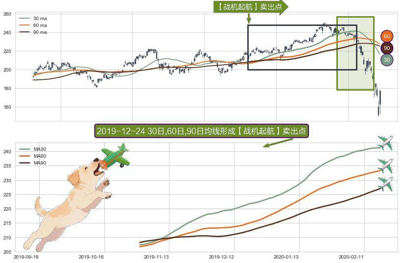 ⚀ 2019-10-31日-2020-02-19日显现 30日-60日-90日均线 【战机起航】卖出点 看空信号,后市看跌,卖出