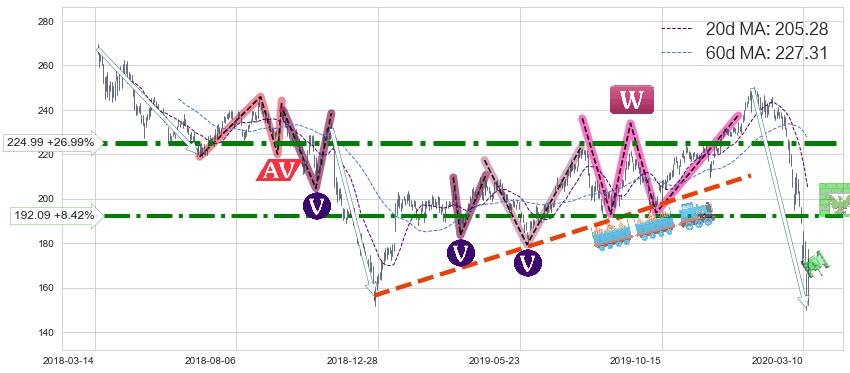 ♘ 阻力价格位224.99,可信任强度90.06%,距离最后交易2020-03-13形成的收盘价格177.17相差 +26.99%