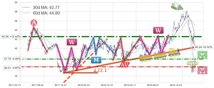 ♘ 阻力价格位37.70,可信任强度69.64%,距离最后交易2020-03-13形成的收盘价格37.85相差 -0.40%