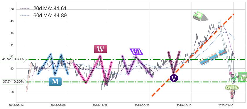 ♘ 阻力价格位37.74,可信任强度69.90%,距离最后交易2020-03-13形成的收盘价格37.85相差 -0.30%