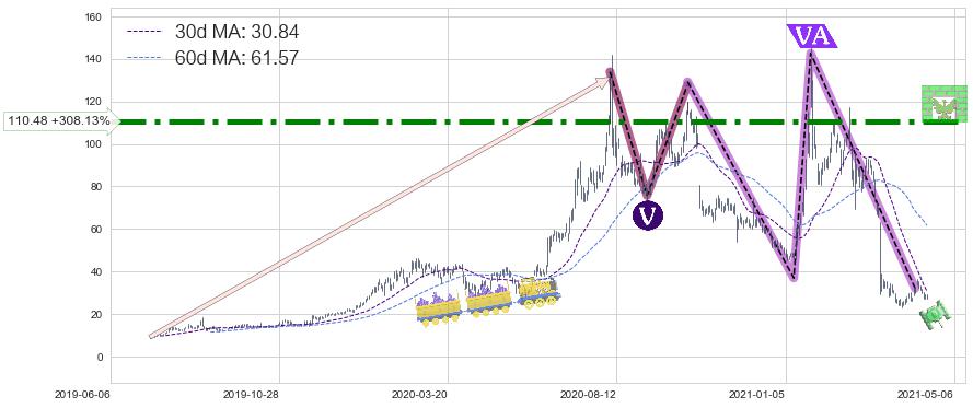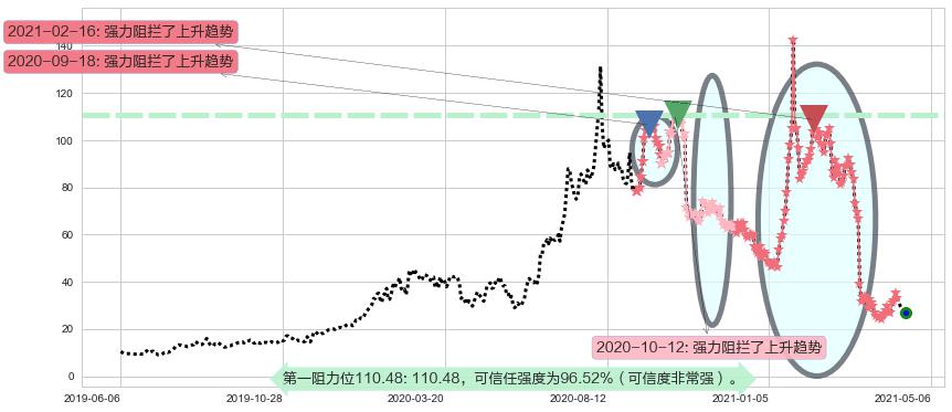 ♘ 阻力价格位110.48,可信任强度96.52%,距离最后交易2021-05-06形成的收盘价格27.07相差 +308.13%
