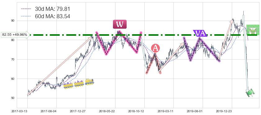 ♘ 阻力价格位82.55,可信任强度90.98%,距离最后交易2020-03-13形成的收盘价格55.05相差 +49.96%