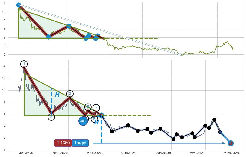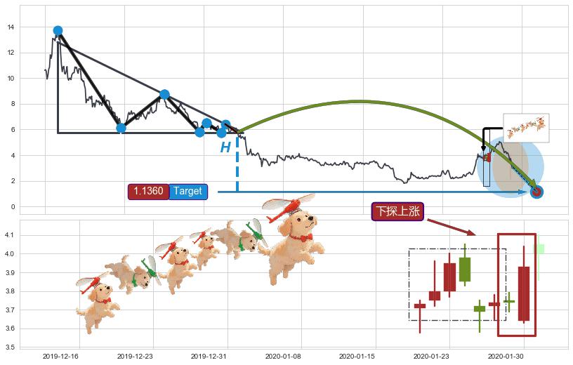 | 8 🅚:好友反攻 ➕ 📐:下降三角整理猜想预期下跌目标target即将达成,随后猜想强支撑来临,预期反弹上涨(均值回复) ☞ 看多信号 ⇥ 【🅚线】交织【图形】⇥ 综合量化分数: 53 | > |