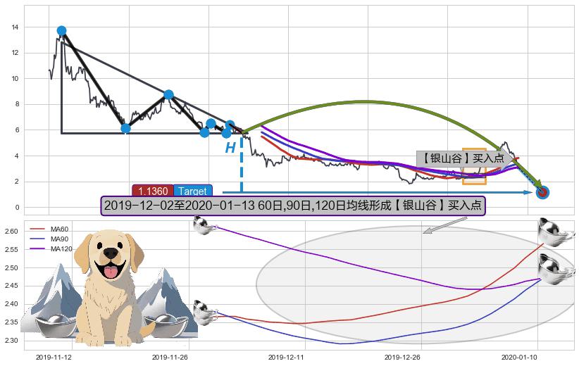 | 8 🅚:上涨两颗星 | 上涨三颗星 ➕ 🎢:【金银山谷】买入点均线组合买入点信号形成后,猜想后续突破上升,沿着向上的尖头三角上涨 ☞ 看多信号 ⇥ 【均线】交织【🅚线】⇥ 综合量化分数: 53 | > |