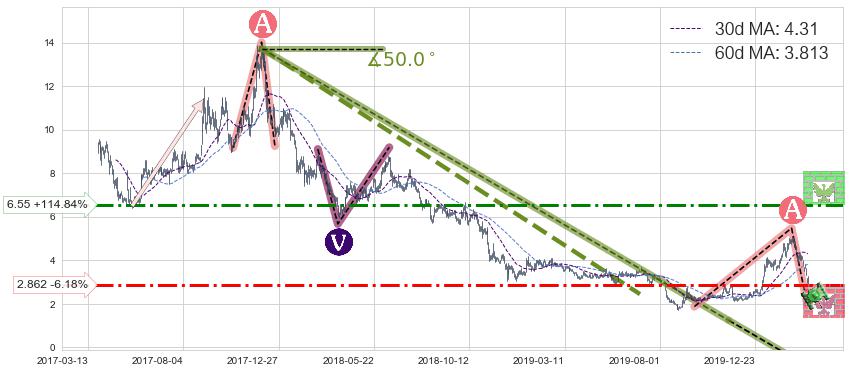 ♘ 阻力价格位6.55,可信任强度67.71%,距离最后交易2020-03-13形成的收盘价格3.050相差 +114.84%
