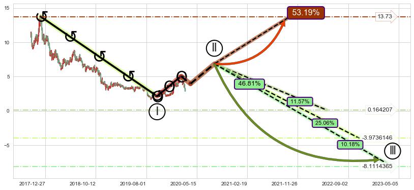 ➣ 高概率大级别循环下跌浪被破坏,反转向上(突破5浪起点)概率53.19%