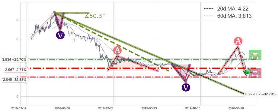 ♘ 阻力价格位3.834,可信任强度66.86%,距离最后交易2020-03-13形成的收盘价格3.050相差 +25.70%