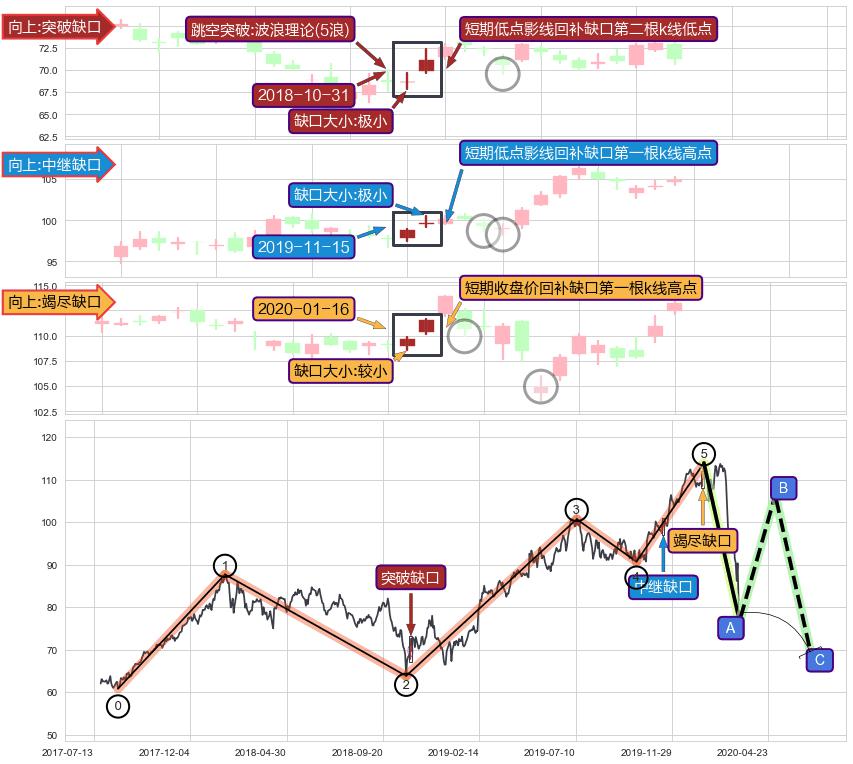 ➣ 2020-01-27再次回踩幅度超过2020-01-21, 竭尽缺口可信度提高
