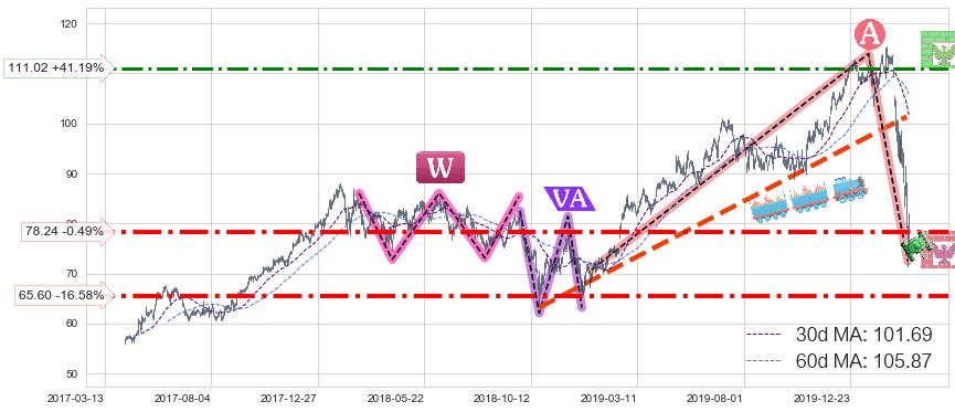 ♘ 支撑价格位78.24,可信任强度83.34%,距离最后交易2020-03-13形成的收盘价格78.63相差 -0.49%