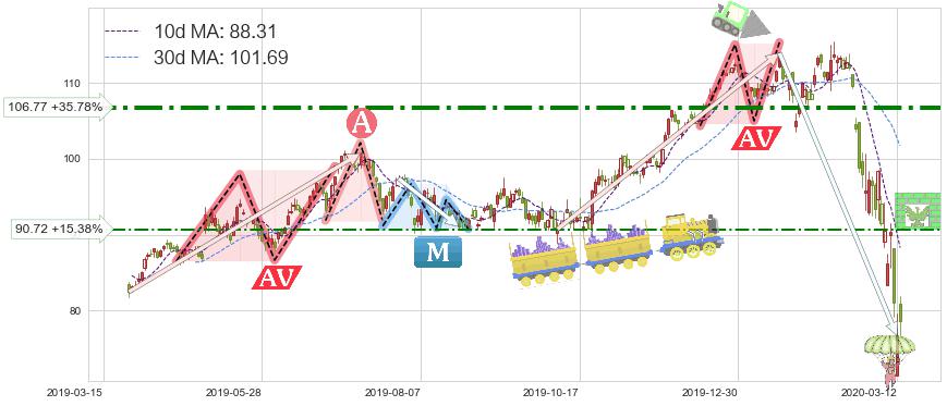 ♘ 阻力价格位90.72,可信任强度53.76%,距离最后交易2020-03-13形成的收盘价格78.63相差 +15.38%