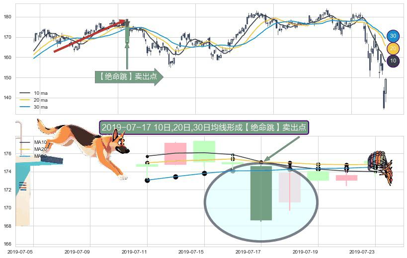 形态多维评估: ⚀ 2019-07-17日显现 10日-20日-30日均线 【绝命跳】卖出点 看空信号,后市看跌,卖出