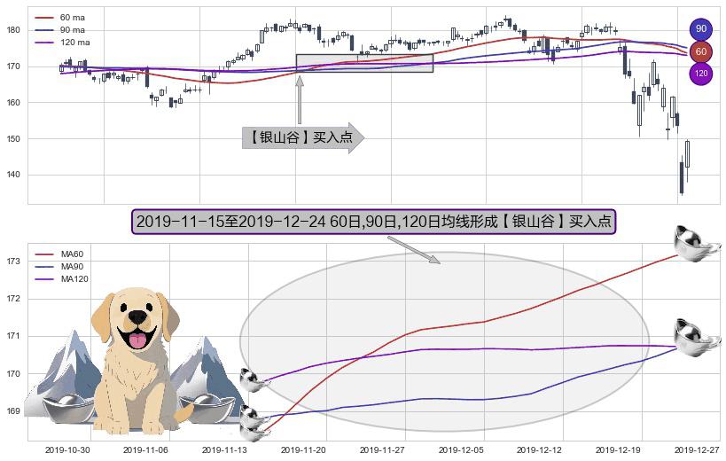 形态多维评估: ⚀ 2019-11-18-日至2019-12-24-日显现 60日-90日-120日均线 【银山谷】买入点 看多信号,后市看涨,买入