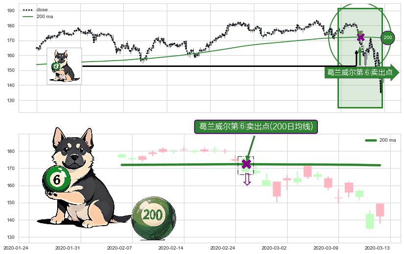 ⚁ 200日均线 第⑥卖出点 属于 均线逆转 信号,属于趋势运行的【异态】即信号期望为上涨转折的顶部