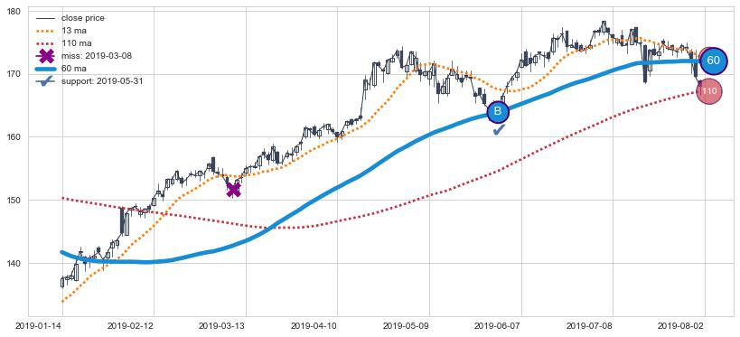上涨趋势2019-01-14-2019-08-02,均线60确认关键支撑1处