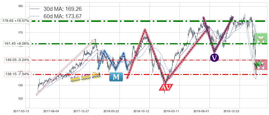 ♘ 阻力价格位161.45,可信任强度79.48%,距离最后交易2020-03-13形成的收盘价格149.41相差 +8.06%
