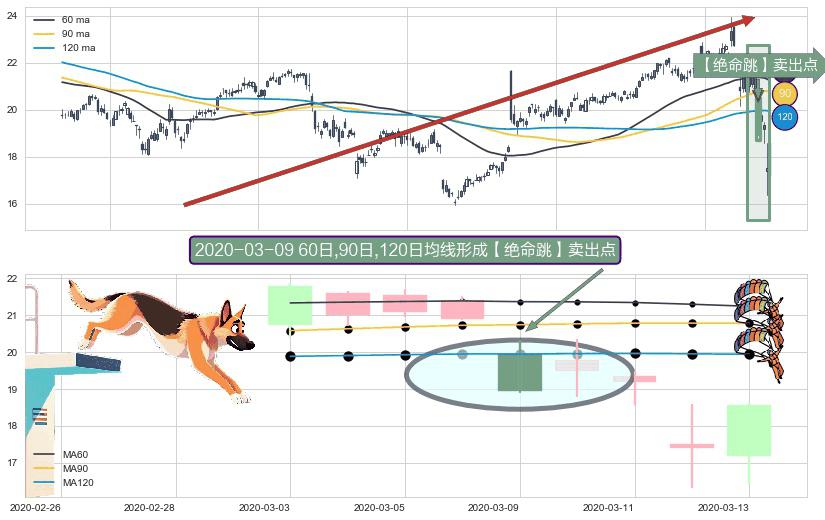 形态多维评估: ⚀ 2020-03-09日显现 60日-90日-120日均线 【绝命跳】卖出点 看空信号,后市看跌,卖出