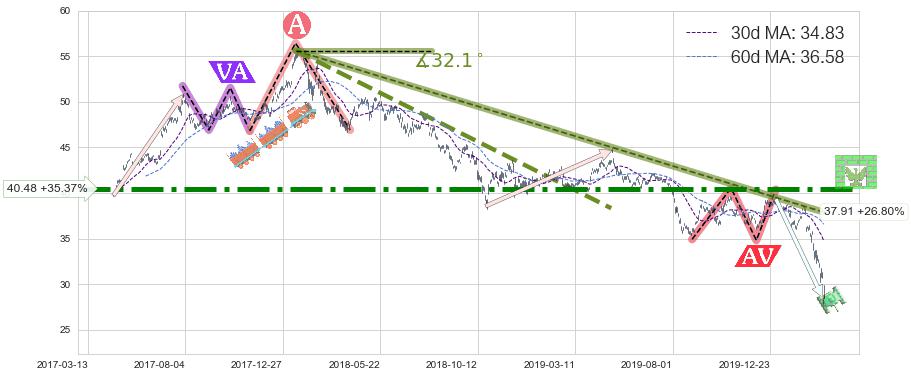 ➣ 【已达成】最小【整理】第一目标价格→(2020-03-09: 31.99 ), 后续继续【整理】下跌动力微弱,下跌较小