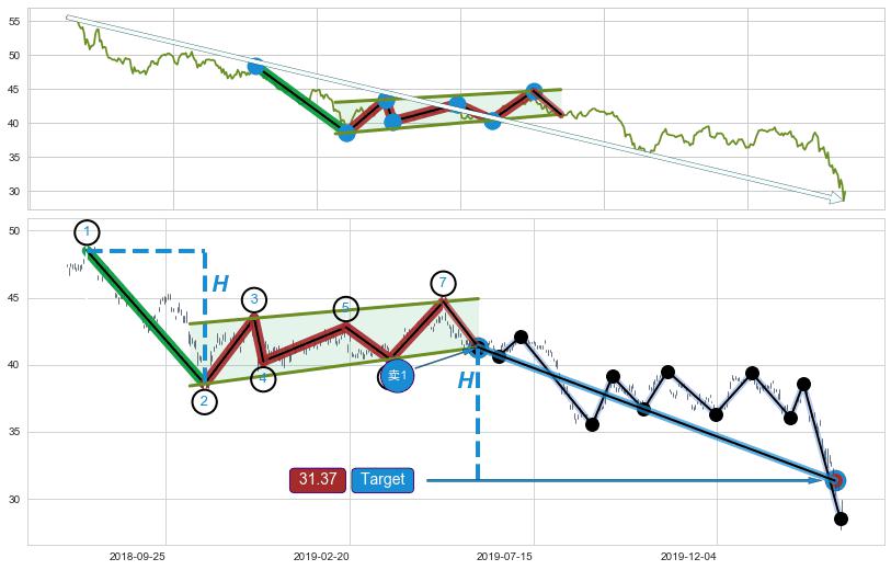 ➣ 最小中继整理跌幅→𝐇: 3.460 (上平行阻力线与下平行支撑线的垂直距离)