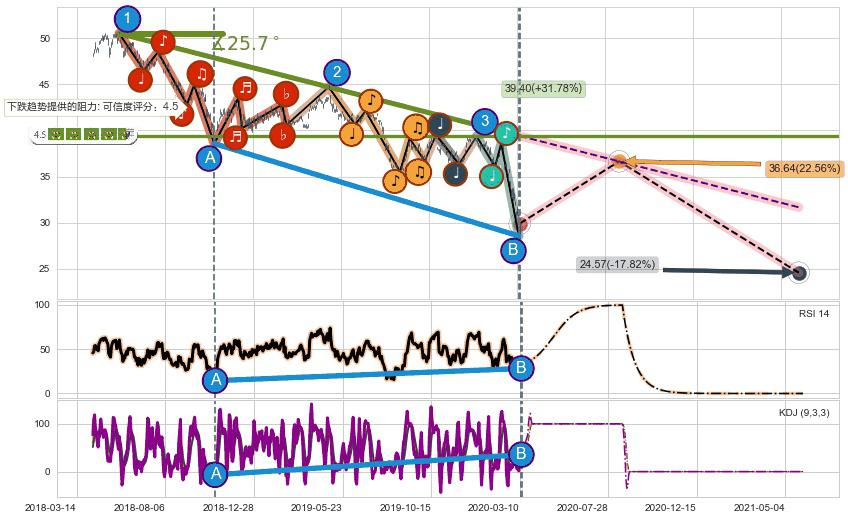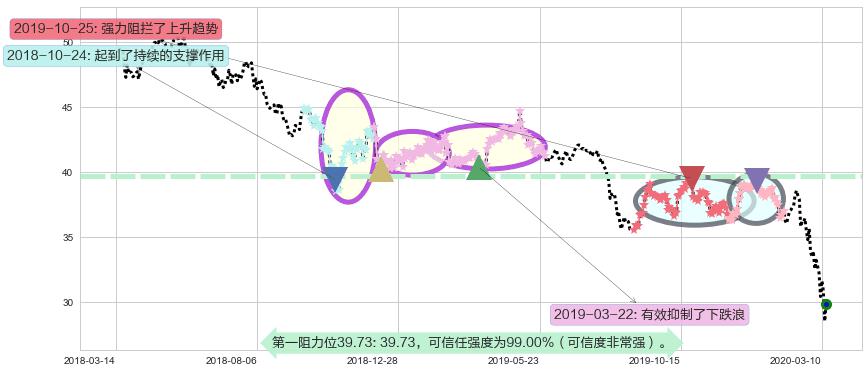 ♘ 在最后的下跌阶段2018-05-22至2020-03-13,存在 持续未破位的阻力位 ,阻力价格39.40,可信任强度86.61%,其距离最后价格29.90相差 +31.78%