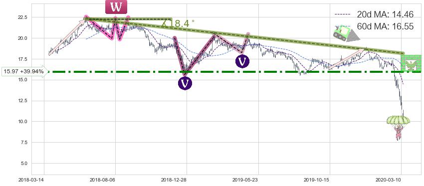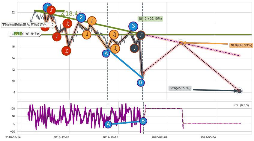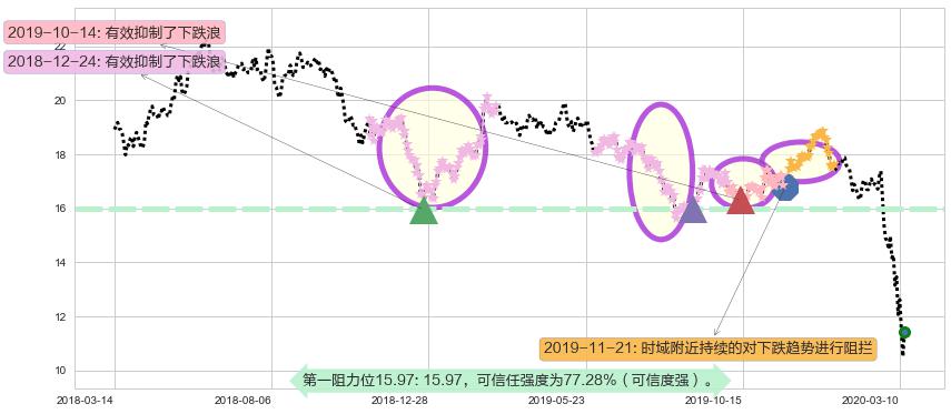 ♘ 阻力价格位15.97,可信任强度77.28%,距离最后交易2020-03-13形成的收盘价格11.41相差 +39.94%