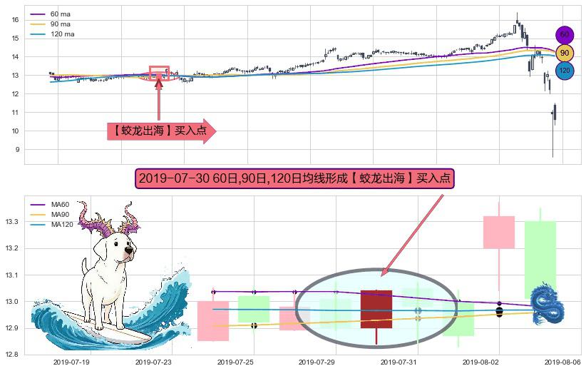 ⚀ 2019-07-30日显现 60日-90日-120日均线 【蛟龙出海】买入点 看多信号,后市看涨,买入