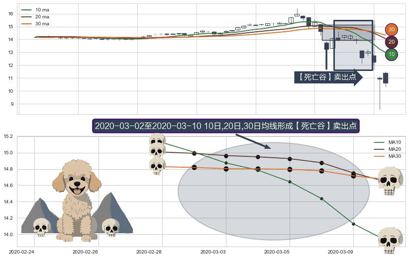 ⚀ 2020-03-03-日至2020-03-10-日显现 10日-20日-30日均线 【死亡谷】卖出点 看空信号,后市看跌,卖出