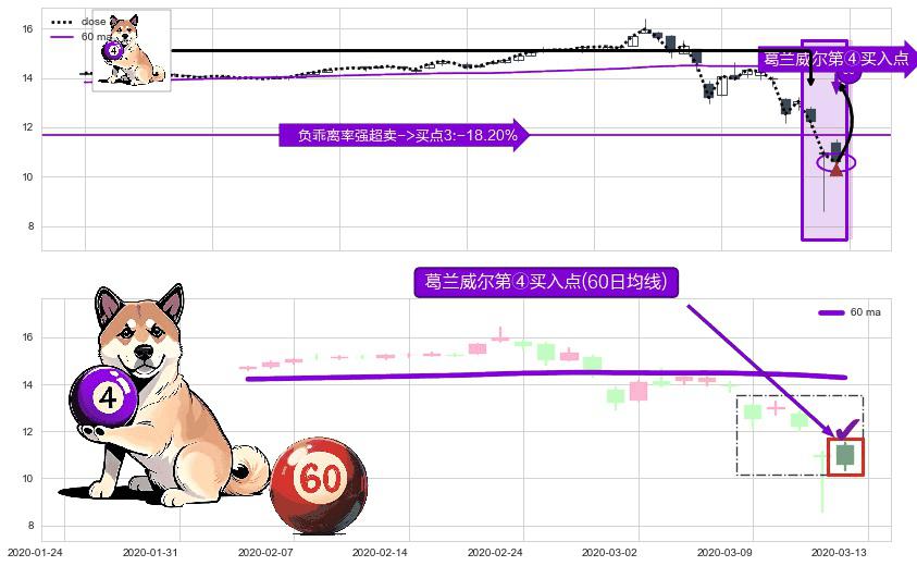 ⚀ 2020-03-13-日显现 葛兰威尔均线 60日均线 第④买入点 下降趋势均值回复的短线反弹信号,后市看涨,买进信号