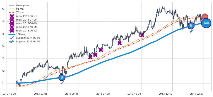 2012-12-20至2014-02-27 慢线与快线呈多头排列, 慢线与快线接触少,无缠绕
