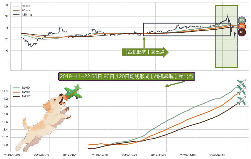 ⚀ 2019-08-23日-2020-02-27日显现 60日-90日-120日均线 【战机起航】卖出点 看空信号,后市看跌,卖出