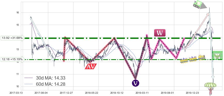 ♘ 阻力价格位13.92,可信任强度88.20%,距离最后交易2020-03-13形成的收盘价格10.57相差 +31.68%