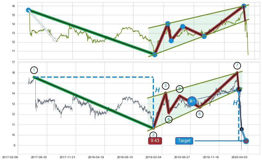 ➢ 【已确认突破】最后价格:10.57与最小【整理】第一目标价格→(2020-04-03: 9.43 )相较: 下跌空间【较小】