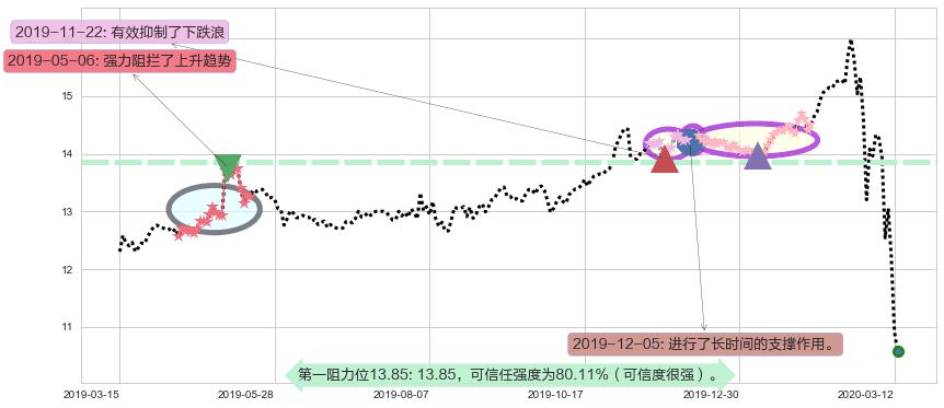 ♘ 阻力价格位13.85,可信任强度80.11%,距离最后交易2020-03-13形成的收盘价格10.57相差 +31.04%