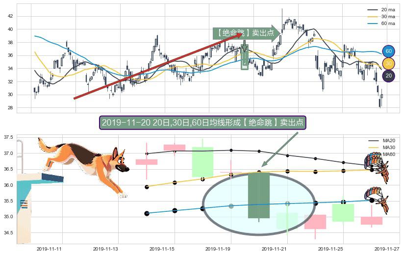 ⚀ 2019-11-20日显现 20日-30日-60日均线 【绝命跳】卖出点 看空信号,后市看跌,卖出